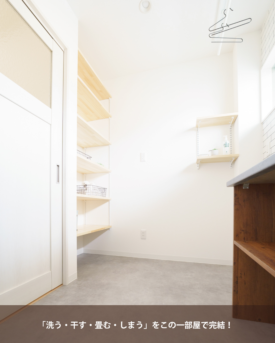 「洗う・干す・畳む・しまう」をこの一部屋で完結!重い洗濯物を抱えて家の中を何度も移動する手間がなくなります。