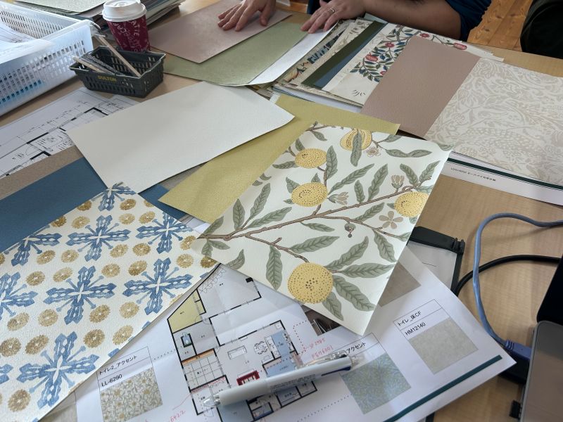 奥様が北欧柄やモリスがお好みで、一緒に「これも可愛い!」「こっちとこっちの組み合わせも捨てがたい!」と盛り上がりました。