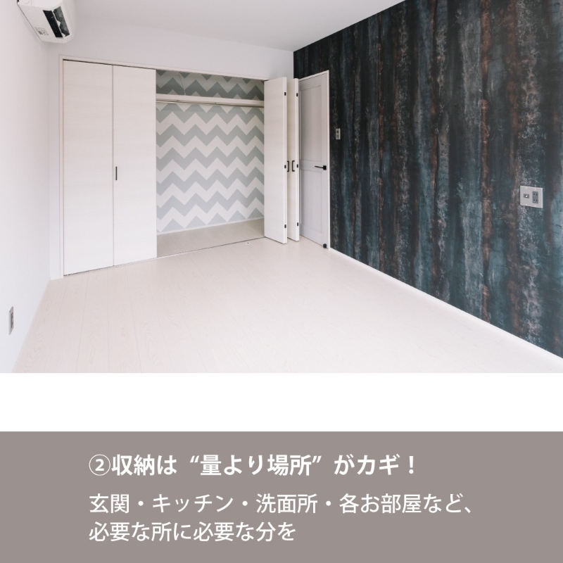 たくさんより「使う場所にある」収納が◎。玄関・キッチン・洗面所・各お部屋など、必要な所に必要な分を。