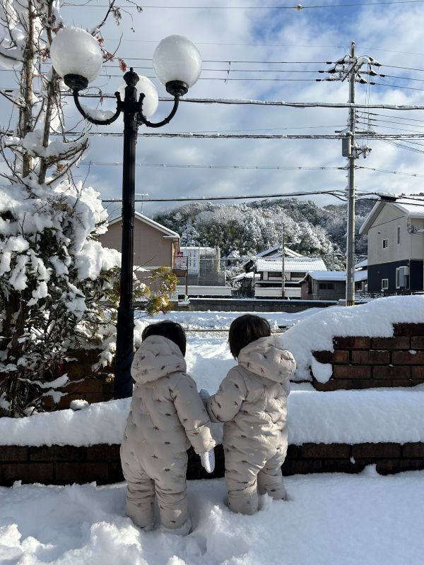 我が家のツインズはさぞかし喜ぶかと思いきや、想像以上の雪の量に怖がって大泣きでした。