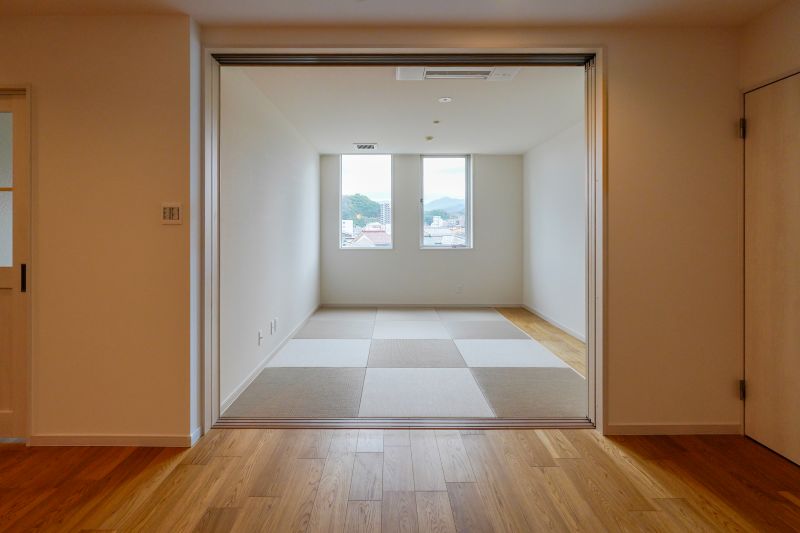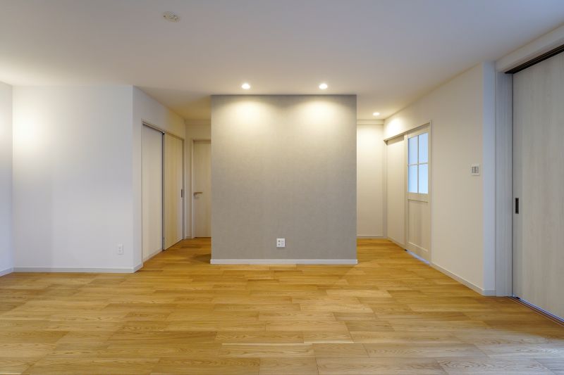 普段は間仕切りを開けて広々空間に、間仕切りを閉めてしまえば客間としても使用できます。