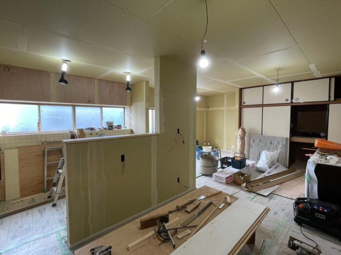 残すはクロス貼り、照明器具や設備の取付、襖の張替え、美装、畳の搬入など!