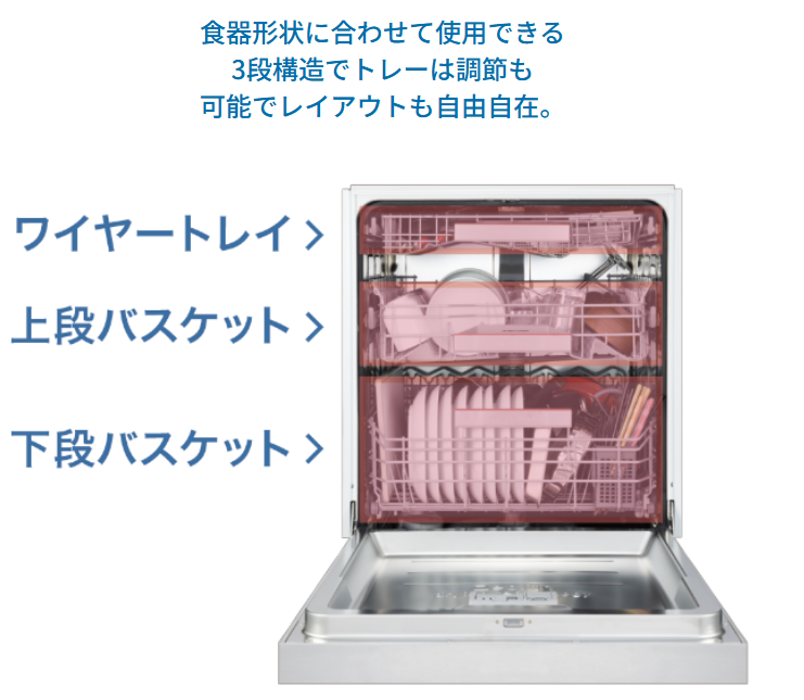 せっかく食洗機を付けても鍋やお弁当箱が入らなかったりと、結局手洗いをする事が多いのですが、ボッシュならたっぷり収納は間違いありません!!