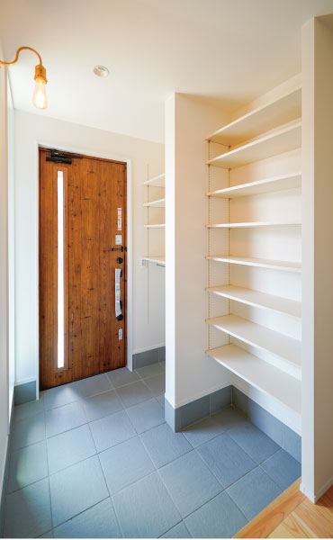 土間仕上げなのでベビーカーや雨具も安心して収納できます
