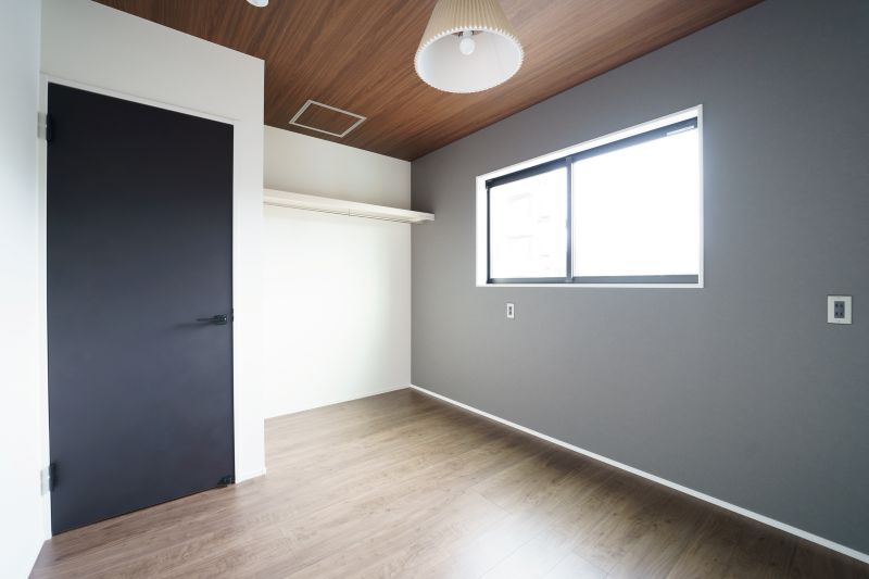 アイアンの鉄骨階段がお部屋のポイントになっていてリビング階段なので家族との会話も増えます。広い吹き抜け空間は