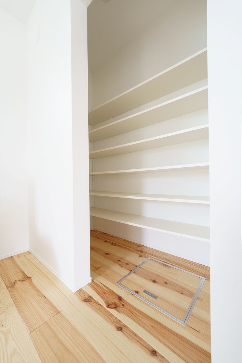 キッチン、洗面脱衣室、浴室が非常に近い位置にまとめられていて家事効率を高めるコンパクトな水まわり動線がポイントです。