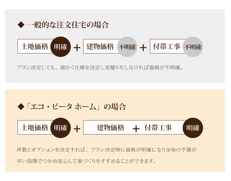 エコ・ビータの定額制注文住宅は、安心のコミコミ価格設定で、必要な費用が明確です。