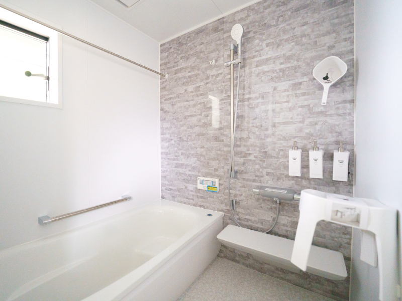 グレー系の石目調パネルで高級感があります。落ち着いた雰囲気でリラックスできます。