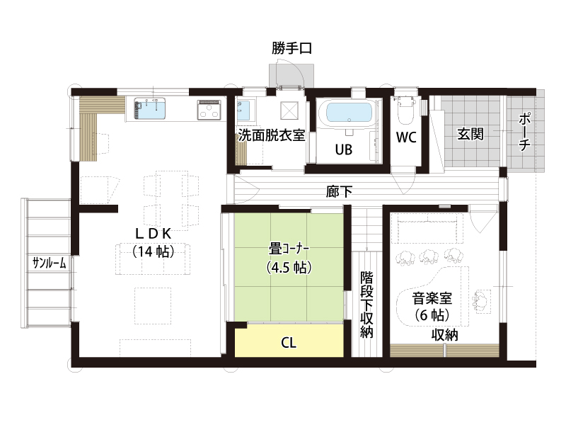 ・海から帰ってきたら家を汚さず、すぐにお風呂へ入れるように勝手口を設けました。